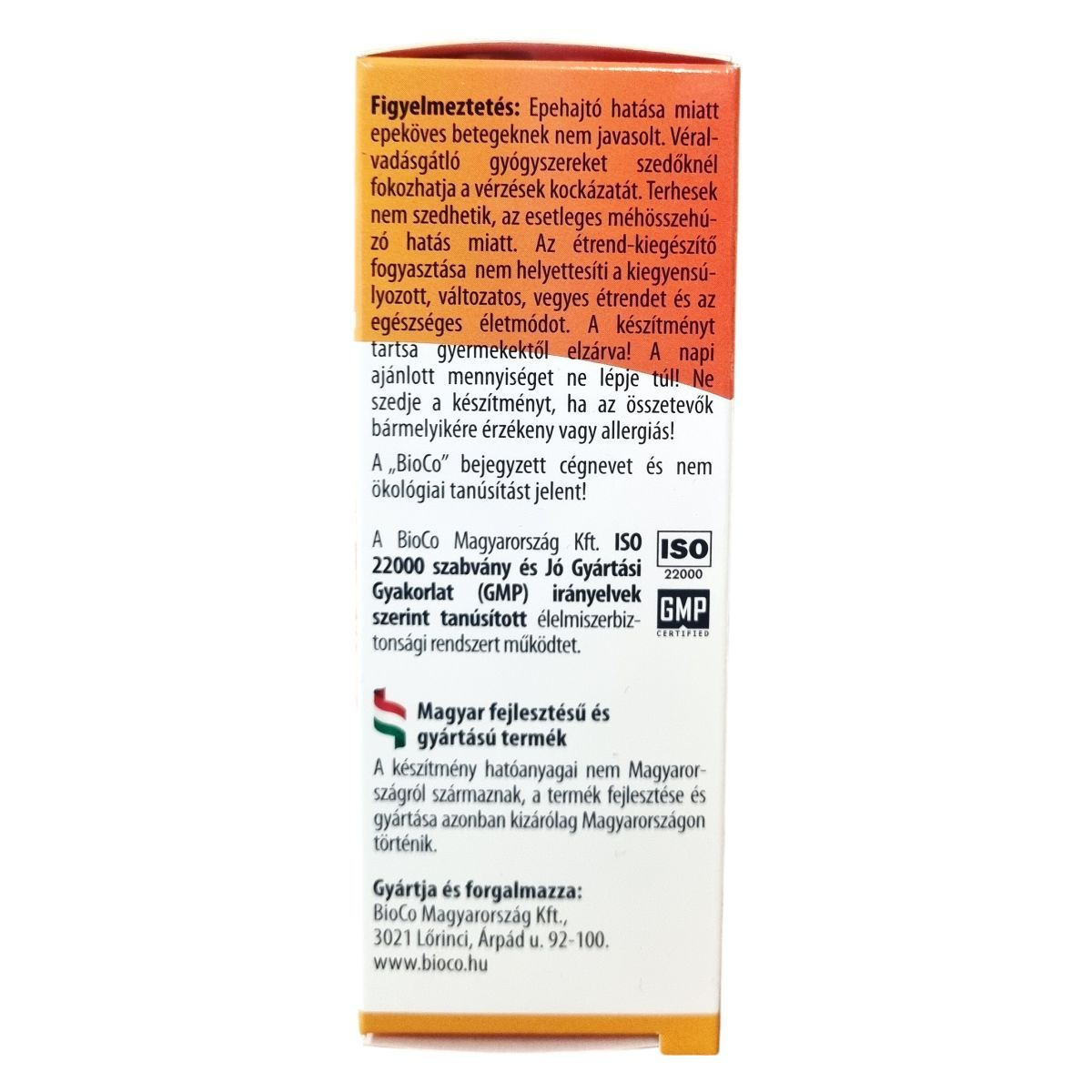 Epehajtó hatása miatt epeköves betegeknek nem javasolt. Véralvadásgátló gyógyszereket szedőknél fokozhatja a vérzések kockázatát. Terhesek nem szedhetik az esetleges méhösszehúzó hatás miatt. Az étrend-kiegészítő fogyasztása nem helyettesíti a kiegyensúlyozott, változatos, vegyes étrendet és az egészséges életmódot. A készítményt tartsa gyermekektől elzárva! A napi ajánlott mennyiséget ne lépje túl!