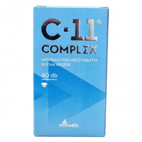 A VITAMED C-11® COMPLEX integrált porcvédő tabletta kizárólag kutyák részére készült, így segítheti az ízületi és porckárosodások kiegészítő kezelését, valamint a porcfejlődést kölyökkutyák növekedési időszakában. A termék hozzájárulhat a kutyák egészséges ízületi működésének támogatásához, az inak, szalagok, ízületi tok, kötőszövet és ízületi nedv regenerációjához, továbbá ízületi műtétek előtt és után is alkalmazható a regeneráció segítésére. Szájon át kell adni, az ajánlott adagolás 1 ízesített tabletta 20 testtömeg-kilogrammonként naponta. Az alkalmazás előtt javasolt a termékinformáció elolvasása és állatorvosi konzultáció. A készítmény nem helyettesíti az állatorvosi gyógyszereket, és az ismert túlérzékenység esetén nem szabad használni. A termék kizárólag állategészségügyi vagy állatápolási célokra szolgál, gyermekektől elzárva kell tartani.