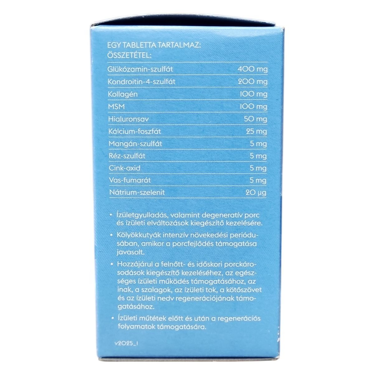 Glükózamin-szulfát, kondroitin-4-szulfát, kollagén, MSM, hialuronsav, kálcium-foszfát, mangán-szulfát, réz-szulfát, cink-oxid, vas-fumarát, nátrium-szelenit