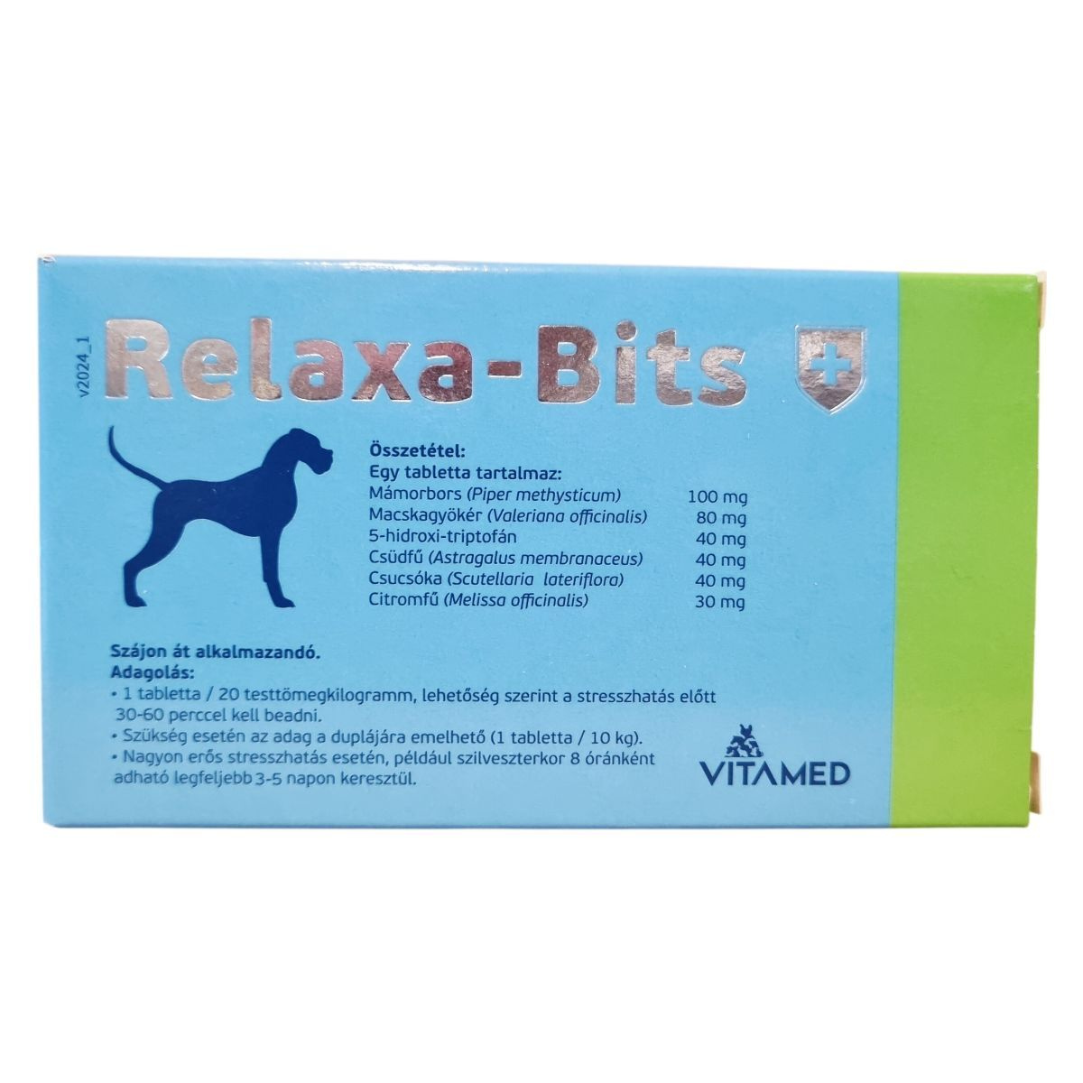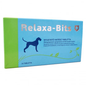 A Relaxa-Bits nyugtató hatású tabletta kifejezetten kutyák számára készült, viselkedészavarok kiegészítő kezelésére, amely segítheti a szorongás és a stressz csökkentését. A tabletta szájba adható, és az adagolás testtömeg alapján történik, különösen stresszes helyzetek előtt. Fontos, hogy macskáknak nem adható, valamint alkalmazása előtt ügyelni kell az esetleges túlérzékenységi reakciókra, amelyek ritkán előfordulhatnak, és szükség esetén az adag csökkentése vagy a szedés felfüggesztése javasolt.