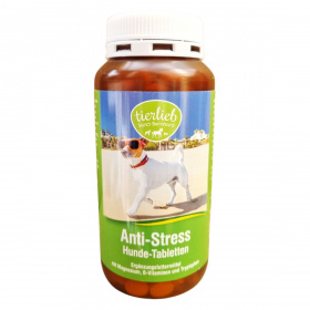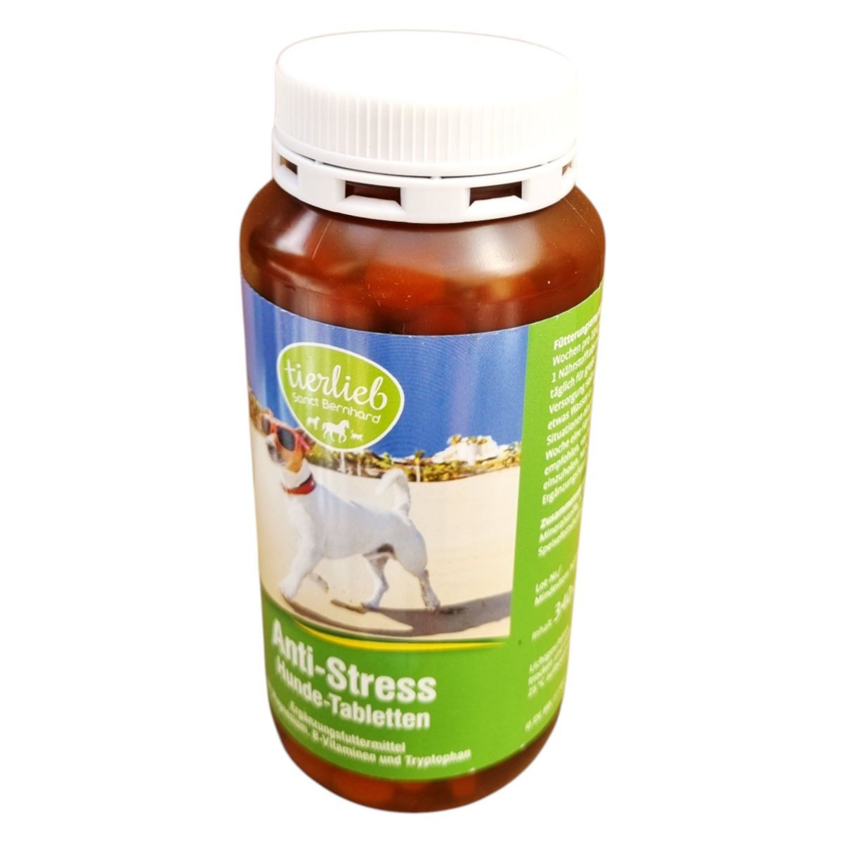 A Sanct Bernhard Anti-Stressz tabletta kutyáknak kifejlesztett étrend-kiegészítő, amely magnéziumot, B-vitaminokat és triptofánt tartalmaz. Ezek az összetevők hozzájárulhatnak a stresszes helyzetek kezeléséhez, mint például az egyedüllét, zajok vagy utazás. A termék kamilla és gyömbér kivonatot is tartalmaz, amelyek szintén támogathatják a nyugodt viselkedést. A tabletták adagolása testtömeg alapján történik, és javasolt a stresszes helyzet előtt fél órával beadni. A termék használata előtt ajánlott állatorvosi konzultáció, és nem javasolt más étrend-kiegészítőkkel vagy gyógyszerekkel együtt alkalmazni.