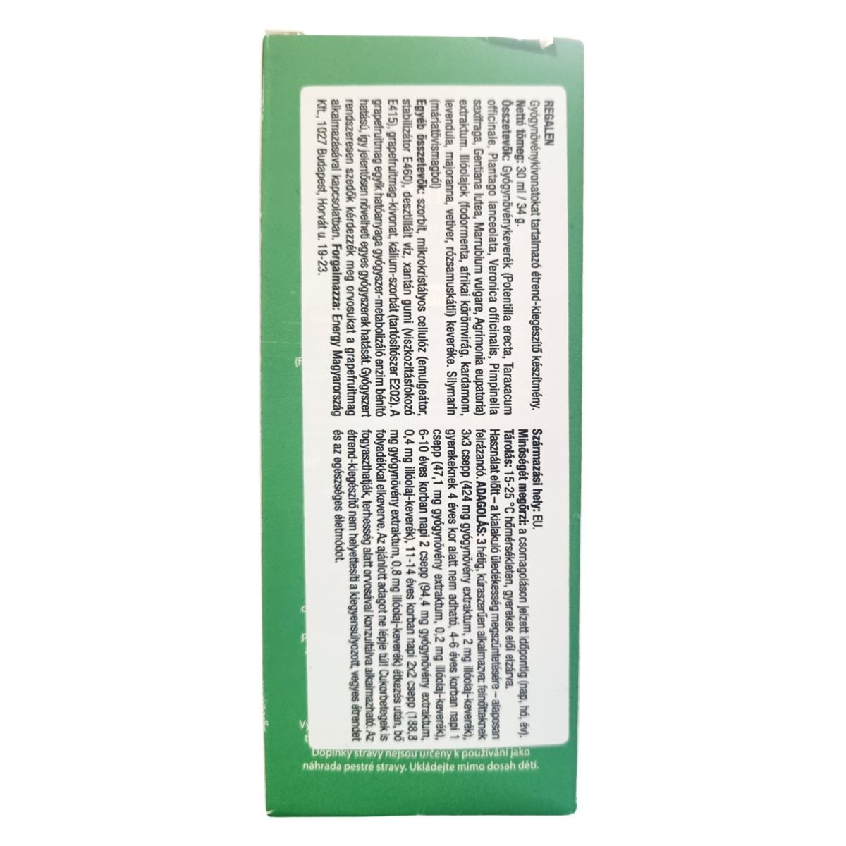 A Regalen gyógynövénykomplex a hagyományos fitoterápia elvei alapján összeállított készítmény, amely májvédő, emésztést segítő és antioxidáns hatású növényi összetevőket tartalmaz. A benne lévő máriatövis (Silybum marianum) és gyermekláncfű (Taraxacum officinale) támogatja a máj regenerációs folyamatait és az epeelválasztást. A párlófű, útifű és veronika hozzájárulhat a szervezet méregtelenítéséhez, míg az üröm és tárnics az emésztőrendszer természetes működését segíthetik elő. A Regalen csepp napi használata hozzájárulhat a szervezet vitalitásához, a sejtek oxidatív stresszel szembeni védelméhez, és támogathatja a belső egyensúly fenntartását természetes úton.