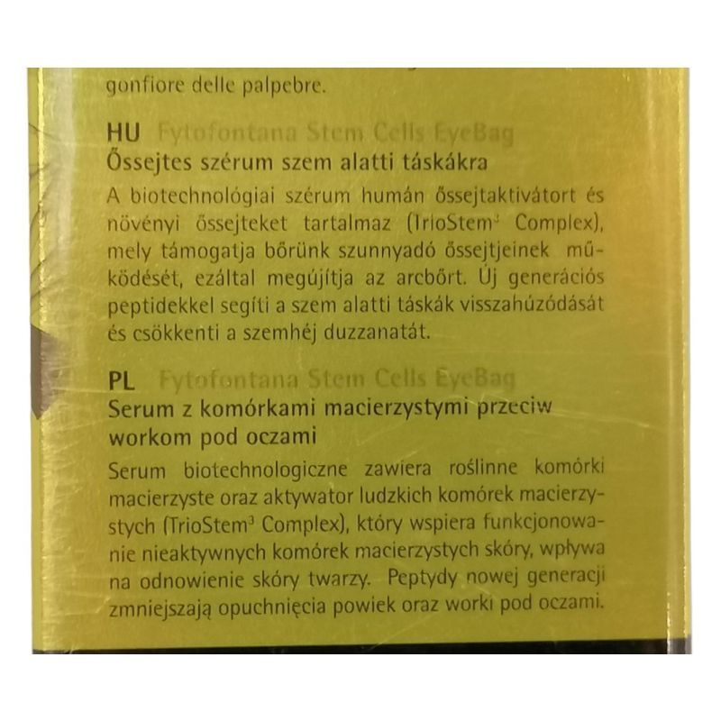 A biotechnológiai szérum humán őssejtaktivátort és növényi őssejteket tartalmaz (TrioStem3 Complex), mely támogatja bőrünk szunnyadó őssejtjeinek működését, ezáltal megújítja az arcbőrt. Új generációs peptidekkel segíti a szem alatti táskák visszahúzódását és csökkenti a szemhéj duzzanatát.