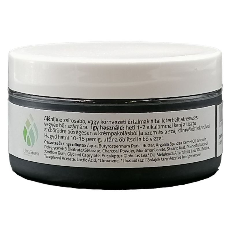INCI: Aqua, Butyrospermum Parkii butter, Argania Spiosa kernel oil, Glycerin, Polyglyceryl-3 Dicitrate/stearate, Charcoal powder, Montmorillonite, Stearic acid, Phenyl alcohol, Xanthan gum, Glyceryl Caprylate, Eucalyptus Globulus leaf oil, Melaleuca Alternafolia Leaf Oil, Betain, Tocopherol Acetate, Lactic acid, * Limonene, *Linalol (* az illóolajok természetes komponense).