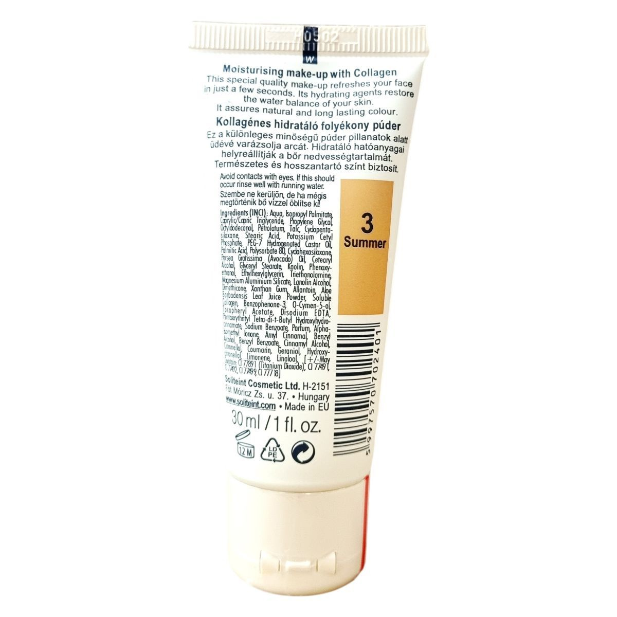 Ez a különleges minőségű kollagénes folyékony púder percek alatt friss és hidratált megjelenést kölcsönöz az arcnak. Hidratáló hatóanyagai segítenek helyreállítani a bőr vízháztartását, miközben természetes és tartós színt biztosítanak. A termék könnyed állagú, bőrbarát összetételű, amely magában foglalja többek között az avokádóolajat, allantoint és aloe verát, valamint UV-szűrővel (Benzophenone-3) is rendelkezik. Kíméletes, de hatékony formula, amely alkalmas mindennapi használatra. A termék 30 milliliteres kiszerelésben érhető el, és EU-ban készült.