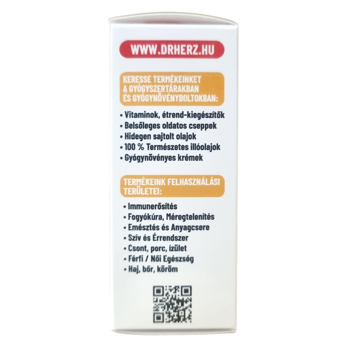 A Dr. Herz egy étrend-kiegészítőket és vitaminokat forgalmazó márka, amely különböző tápanyagokat, növényi kivonatokat és funkcionális összetevőket tartalmazó készítményeket kínál. A Dr. Herz az étrend-kiegészítők piacán ismert márkanév, amely elsősorban a következő termékkategóriákkal kapcsolódik össze: vitaminok és ásványi anyagok, növényi kivonatok, speciális tápanyagkészítmények, funkcionális olajok és komplex étrend-kiegészítők.