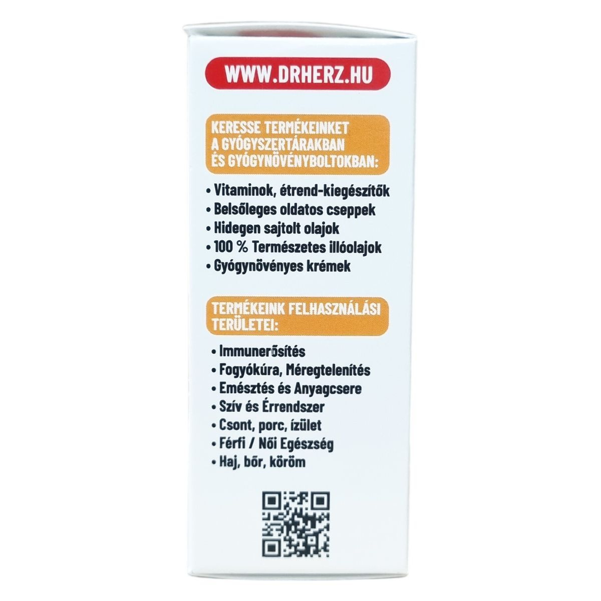 A Dr. Herz egy étrend-kiegészítőket és vitaminokat forgalmazó márka, amely különböző tápanyagokat, növényi kivonatokat és funkcionális összetevőket tartalmazó készítményeket kínál. A Dr. Herz az étrend-kiegészítők piacán ismert márkanév, amely elsősorban a következő termékkategóriákkal kapcsolódik össze: vitaminok és ásványi anyagok, növényi kivonatok, speciális tápanyagkészítmények, funkcionális olajok és komplex étrend-kiegészítők.