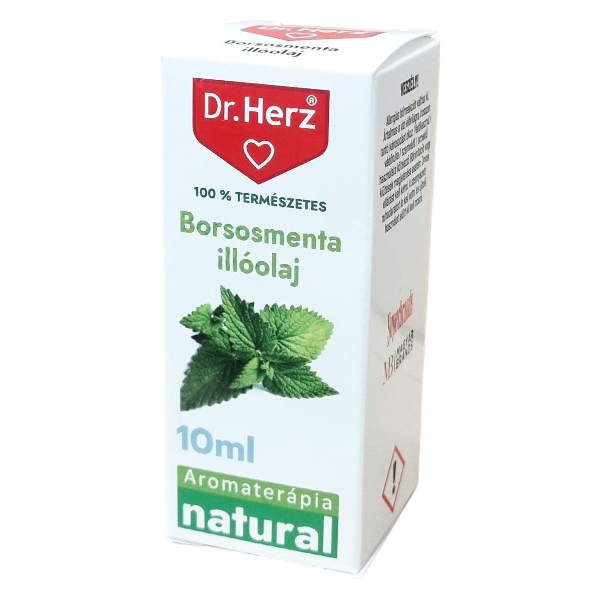 A Dr.Herz 100% természetes borsosmenta illóolaj gyógyszerkönyvi minőségű, hígítatlan olaj, amely hatékonyan frissíti a levegőt aromaterápiában és illatosításra. A termék használata során ajánlott a megfelelő védőfelszerelés használata, mivel irritatív hatású lehet, és káros a vízi élővilágra. A terméket gyermekektől elzárva, száraz, sötét helyen kell tárolni. A Dr.Herz termékcsalád részeként a borsosmenta illóolaj a gyógyszertárakban és gyógynövényboltokban elérhető, ahol többféle vitamin, étrend-kiegészítő, olaj és gyógynövényes krém is megtalálható különböző egészségügyi célokra.