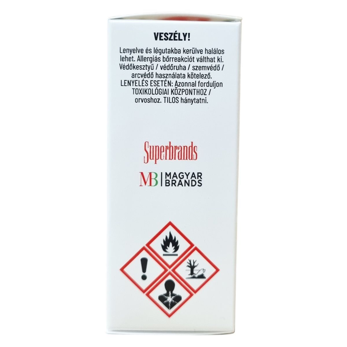 Lenyelve és légutakba kerülve halálos lehet. Védőkesztyű, védőruha, szemvédő és arcvédő használata kötelező. Lenyelés esetén azonnal forduljon toxikológiai központhoz vagy orvoshoz, hánytatni tilos.