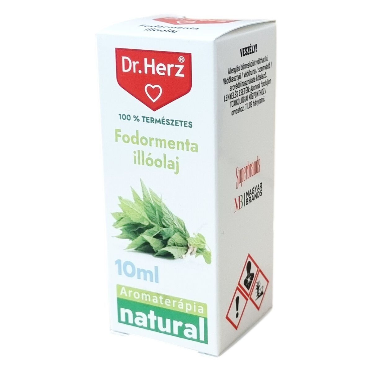 A Dr.Herz fodormenta illóolaj 10 ml kiszerelésben kiváló minőségű, 100%-ban természetes illóolaj, amely aromaterápiára és légfrissítésre egyaránt alkalmas. A termék természetes limonént tartalmaz, amely hozzájárulhat a frissítő hatáshoz. Használata elsősorban párologtatásra és illatosításra javasolt. A fodormenta illóolajat gondosan kell tárolni gyerekektől elzárva, és a terméket a megfelelő védőfelszerelés használatával kell kezelni, mivel allergiás reakciókat válthat ki. A termék használata során különösen fontos a biztonsági előírások betartása, és lenyelés esetén azonnal segítséget kell kérni toxikológiai központtól vagy orvostól. A Dr.Herz termékcsalád széles kínálatában megtalálhatók további vitaminok, étrend-kiegészítők, belsőleges oldatos cseppek, hidegen sajtolt olajok, gyógynövényes krémek, amelyek különféle egészségügyi területeken nyújtanak támogatást.