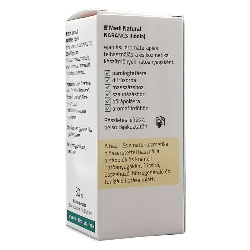 XXL Narancs illóolaj - praktikus, gazdaságos kiszerelésben, amivel pénzt takarítasz meg! Jobb kedvre vágysz, vagy csak fáradt vagy. Szívd mélyen magadba a friss édes gyümölcsös citrusos aromáját. Meglátod, hogy eloszlanak a viharfelhők a fejed fölül és mosolyra fakadsz. A házi- és a natúrkozmetika előszeretettel használja arcápolók és krémek hatóanyagaként frissítő, összehúzó, bőrregeneráló, ránctalanító és tonizáló hatása miatt. Összetevőként bármely bőrtípus ápolására szánt kozmetikai készítménybe alkalmas különösen a zsíros, vegyes, eltömődött arcbőrre.