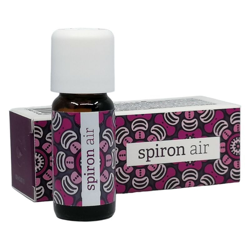 A készítmény elsősorban a tüdő, a szív, a vastagbél, a gyomor energetikai pályáit továbbá az övvezetéket és más meridiánokat harmonizáló illóolajok elegyét tartalmazza. A Spiron Air használata köhögés, fejfájás, depresszió, neuraszténia, idegkimerültség, fertőző tüdőbetegség és influenza esetén javasolt. Kiválóan alkalmazható a környezet és a levegő fertőtlenítéséhez. Relaxáló hatásával nyugodt, békés atmoszférát teremt. Aromalámpákban és aroma diffúzorokban használható termék.