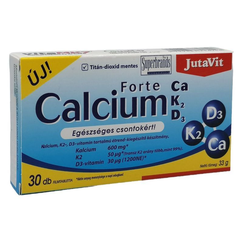 JutaVit Calcium Forte Ca/K2/D3 az ideális összetétel az egészséges csontozat, izomfunkció, normál fogazat fenntartásához.