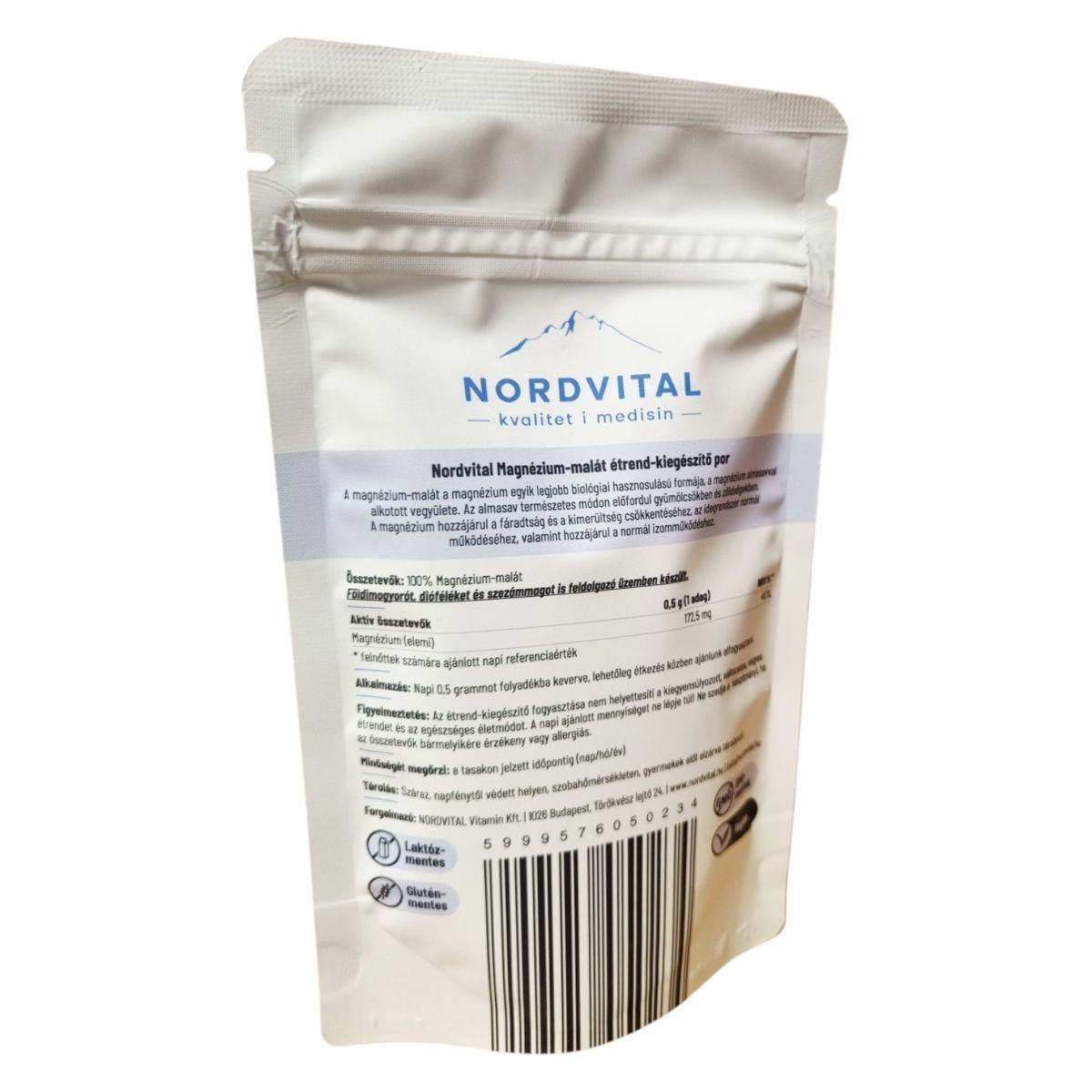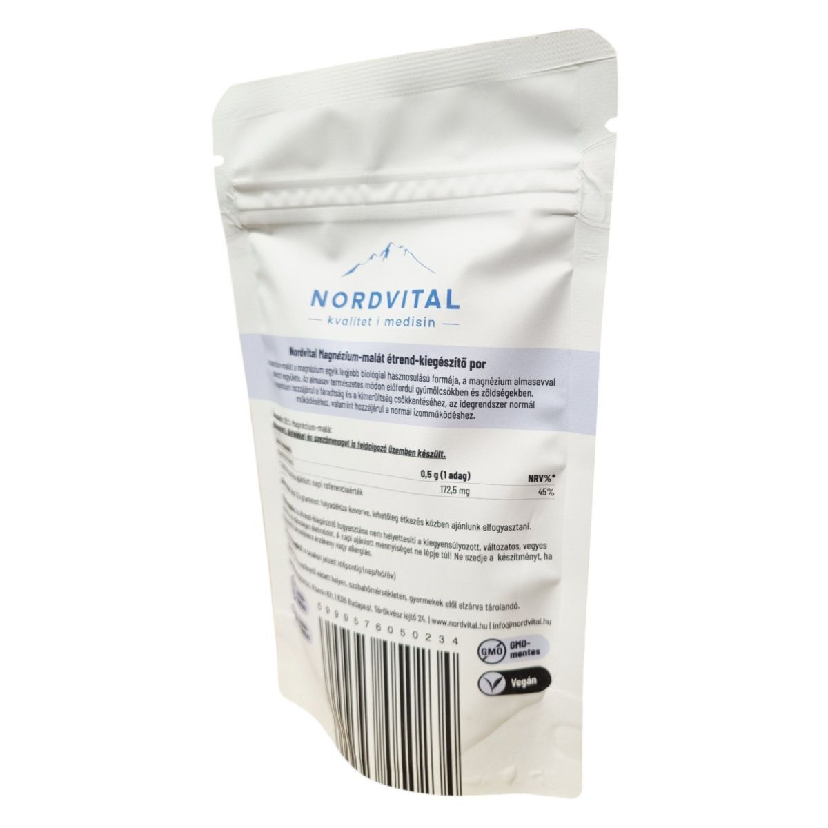 A Nordvital Magnézium-malát étrend-kiegészítő por a magnézium egyik legjobban hasznosuló formáját kínálja, amely almasavval alkotott vegyületként természetes módon fordul elő gyümölcsökben és zöldségekben. A termék 180 adagot tartalmaz, és napi 0,5 gramm fogyasztása ajánlott. A magnézium hozzájárulhat a fáradtság és kimerültség csökkentéséhez, valamint az idegrendszer és az izmok normál működéséhez. A termék vegán, GMO-mentes, gluténmentes és laktózmentes, így széles körben alkalmazható különböző étrendi igények kielégítésére.