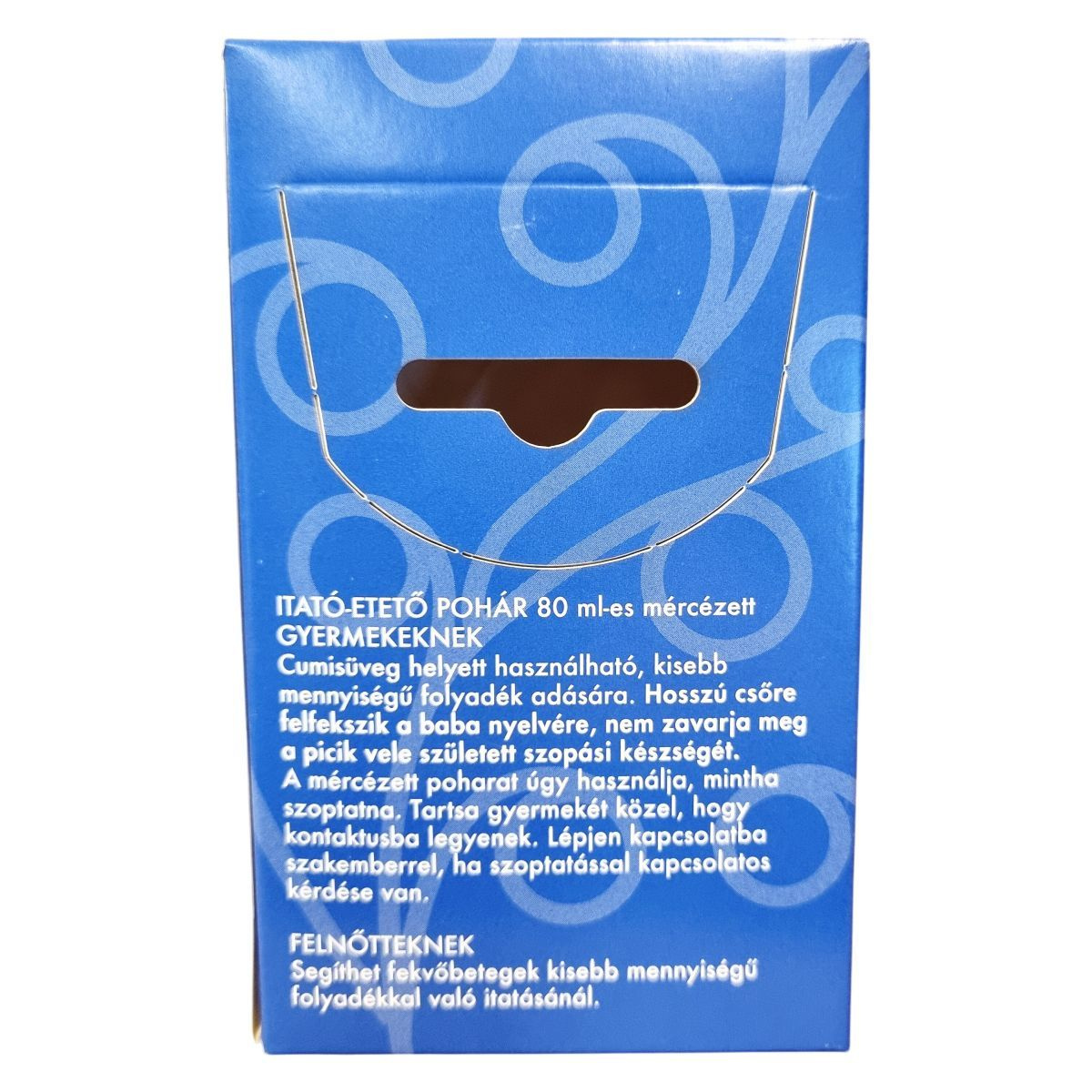 Az itató-etető pohár cumisüveg helyett használható, kisebb mennyiségű folyadék adására, szoptatásbarát kialakítással.