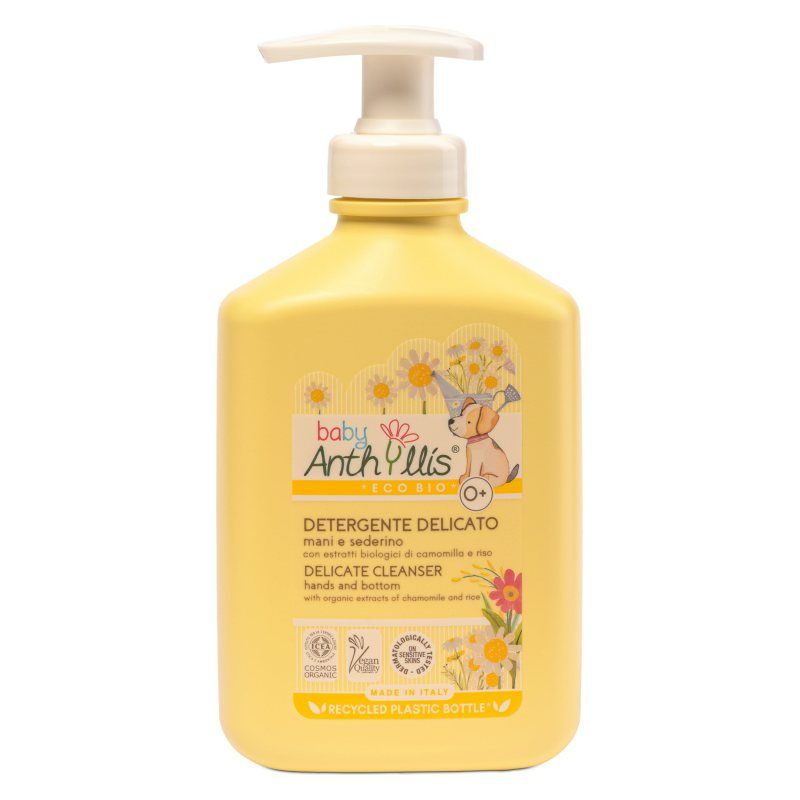 A Baby Anthyllis Delicate Cleanser egy kíméletes, bio eredetű összetevőkből készült folyékony tisztítószer, melyet kifejezetten a babák és kisgyermekek érzékeny bőrére fejlesztettek ki. Formulájában bio kamilla-, rizs- és aloe vera kivonat található, amelyek segíthetnek megnyugtatni és puhítani a bőrt. A termék pH 5,5 értékű, bőrbarát összetételű, nem tartalmaz agresszív tenzideket, és mindennapi használatra is megfelelő. Gyengéden tisztít, miközben megőrzi a bőr természetes egyensúlyát, illata enyhe és természetes eredetű.