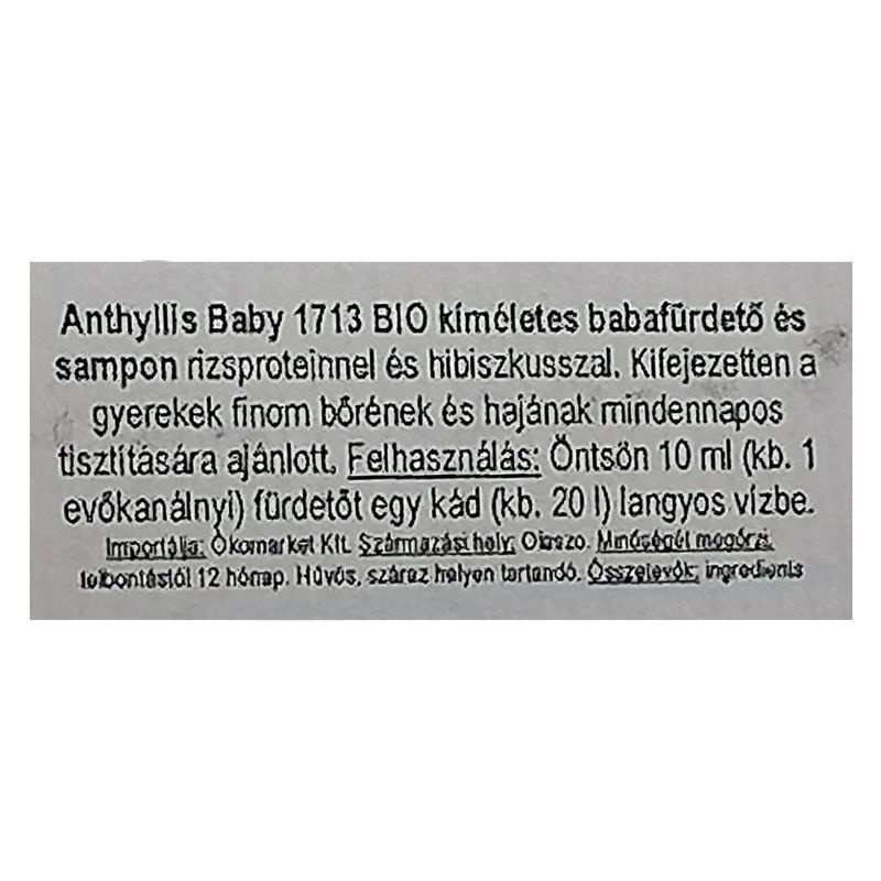 Ez az Anthyllis speciális tisztítószer tökéletes a babák érzékeny bőrére és hajára. A búzaprotein, a hibiszkusz kivonat és a további biológiai összetevők kellemes fürdőélményt biztosítanak. Biológiai termesztésből származó olívaolaj, nem tartalmaz szappant, színezék mentes, bőrgyógyászatilag tesztelt.