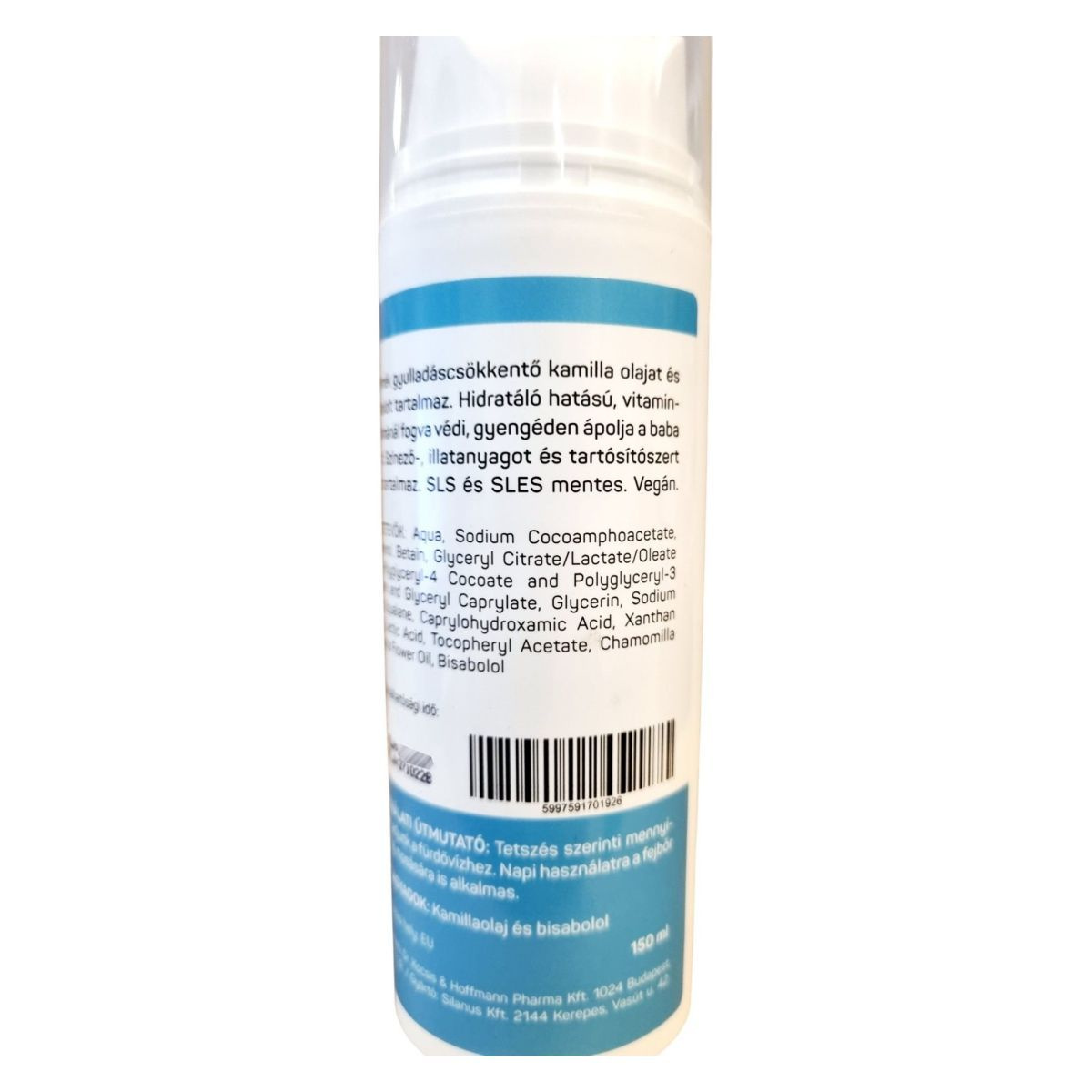 A termék gyulladáscsökkentő kamilla olajat és bisabololt tartalmaz. Hidratáló hatású, vitamintartalmánál fogva védi, gyengéden ápolhatja a baba bőrét. Színező-, illatanyagot és tartósítószert nem tartalmaz.