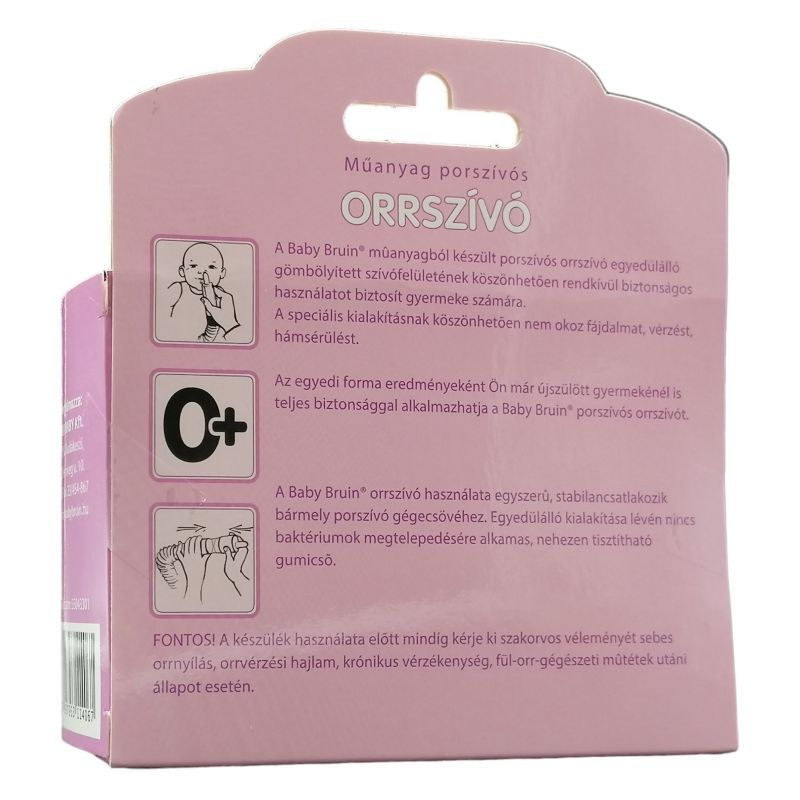 Műanyagból készült, porszívós orrszívó. Egyedülálló gömbölyített szívófelületének köszönhetően használata biztonságos gyermeke számára. Nem okoz fájdalmat, vérzést, hámsérülést.