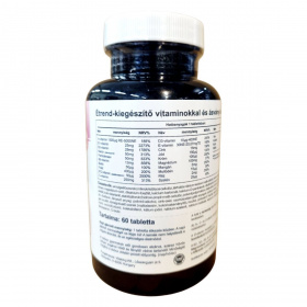 emulgeálószerek (mikrokristályos cellulóz, térhálós nátrium-karboxi-metil-cellulóz), kalcium-foszfát, kalcium-karbonát, kalcium-D-pantotenát, nikotinamid, L-aszkorbinsav, cink-oxid, csomósodást gátló anyagok (zsírsavak magnézium-sói, szilícium-dioxid), piridoxin-hidroklorid (hidroxi-propil-metil-cellulóz), tiamin-mononitrát, riboflavin, csomósodást gátló anyagok (zsírsavak, zsírsavak magnézium-sói), retinil-acetát, kolekalciferol, kálium-jodid, nátrium-szelenit, króm(III)-klorid, réz(II)-szulfát, mangán-szulfát, pteroil-monoglutaminsav, D-biotin, cianokobalamin, nátrium-molibdát.