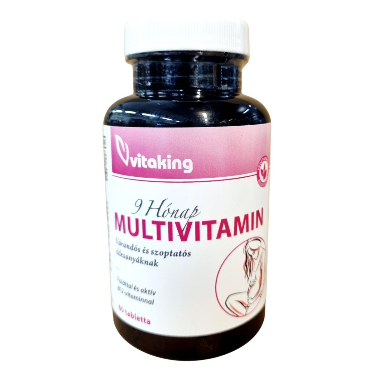 A Vitaking 9 Hónap Multivitamin kifejezetten várandós és szoptatós édesanyáknak készült. Folsavat és aktív B12-vitamint tartalmazhat, amelyek hozzájárulhatnak az anyai szövetek növekedéséhez és az immunrendszer normál működéséhez.