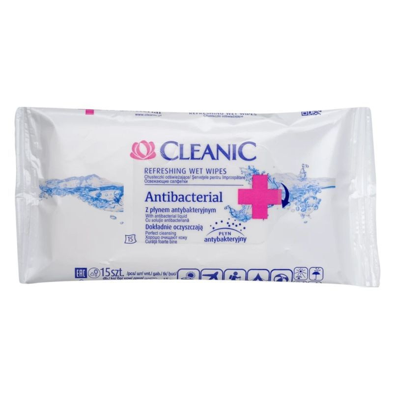 Cleanic antibakteriális frissítő törlőkendő kézre és testre.