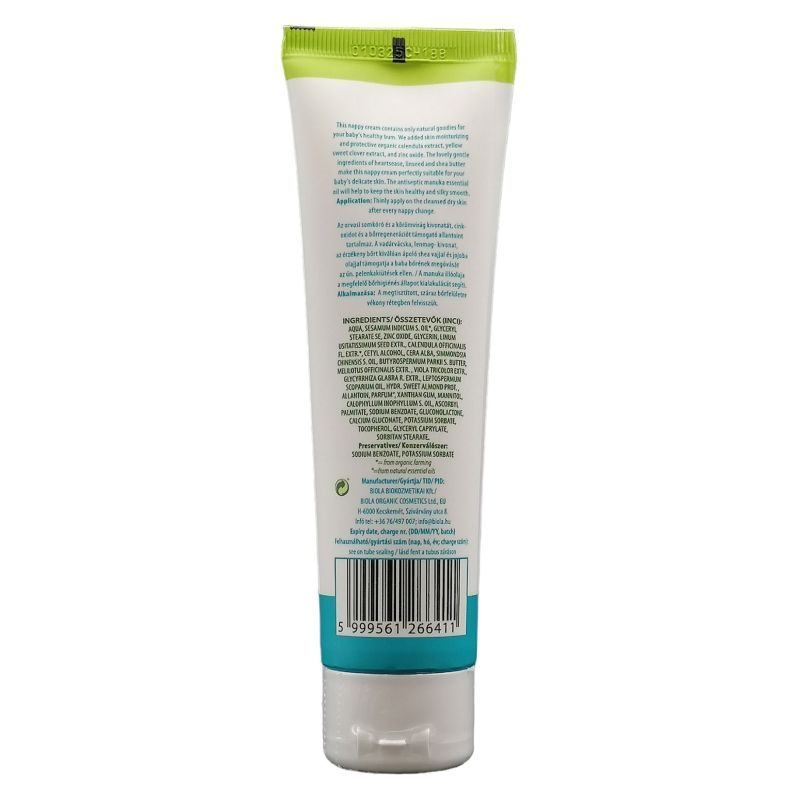 Az orvosi somkóró és a körömvirág kivonatát, cinkoxidot és a bőrregenerációt támogató allantoint tartalmaz. A vadárvácska, lenmag- kivonat, az érzékeny bőrt kiválóan ápoló shea vajjal és jojoba olajjal támogatja a baba bőrének megóvását az ún. pelenkakiütések ellen. A manuka illóolaja a megfelelő bőrhigiénés állapot kialakulását segíti. Alkalmazása: A megtisztított, száraz bőrfelületre vékony rétegben felvisszük.
