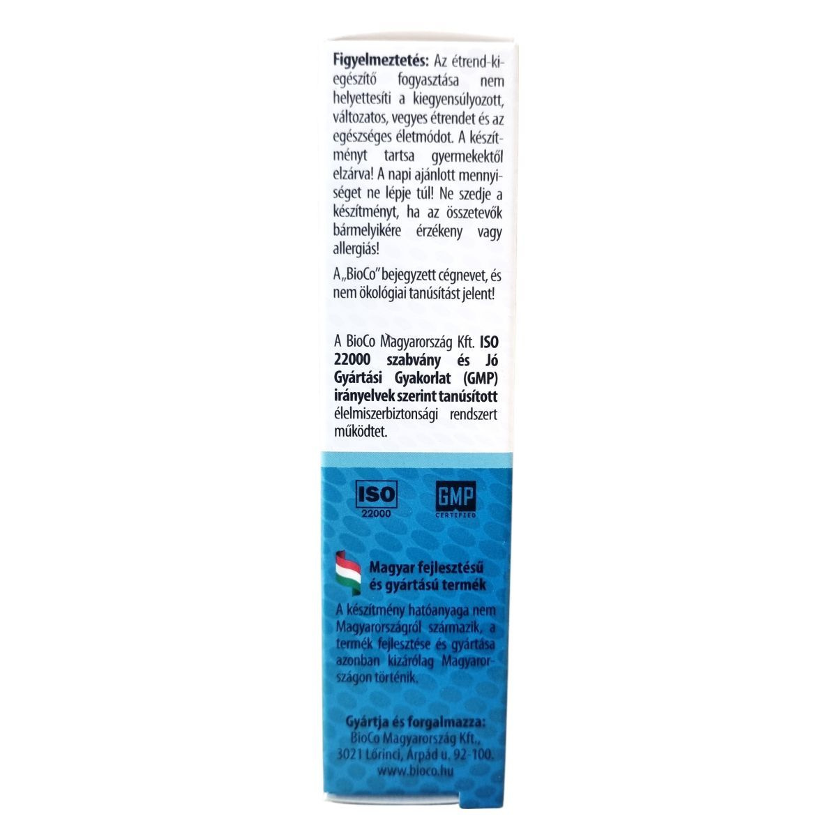 Az étrend-kiegészítő fogyasztása nem helyettesíti a kiegyensúlyozott, változatos, vegyes étrendet és az egészséges életmódot. A készítményt tartsa gyermekektől elzárva! A napi ajánlott mennyiséget ne lépje túl! Ne szedje a készítményt, ha az összetevők bármelyikére érzékeny vagy allergiás! A „BioCo” bejegyzett cégnevet, és nem ökológiai tanúsítást jelent!