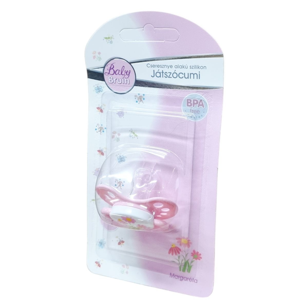 A BabyBruin® cseresznye alakú szilikon játszócumi 0–12 hónapos korú gyermekek számára ajánlott. A cumi a gyártástól számított 5 éven belül felhasználható. A gyártás időpontja a csomagoláson kerül feltüntetésre. A speciális kialakítás megakadályozza a lenyelést, a pajzson kialakított nyílások pedig lehetővé teszik a levegővételt és a bőr folyamatos légzését cumizás közben. Minősége I. osztály. Gyártva Németországban. Importőr: BabyLux Kft.
