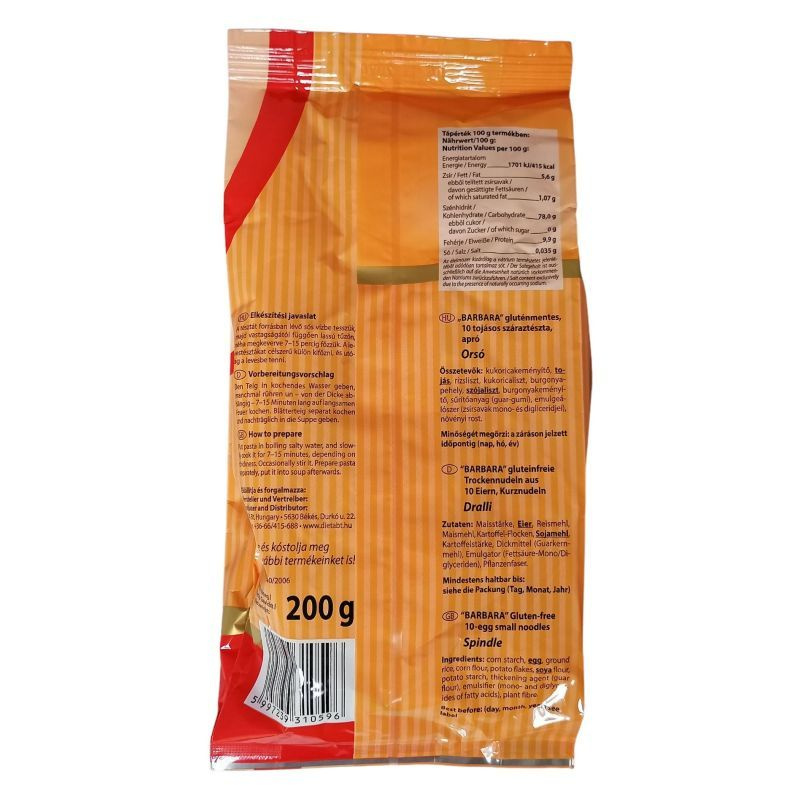 A Barbara száraztészták tiszta tojásból készülnek víz hozzáadása nélkül, ezért a főzés során többszörösére nőnek. Színezék nélkül készülnek, lepiríthatóak.