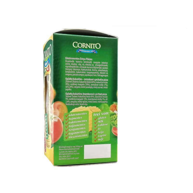 A Cornito gluténmentes pikáns ostya egy ízletes és ropogós snack, amely tökéletes választás mindazok számára, akik szeretnék élvezni a finom falatokat anélkül, hogy a gluténra érzékenyek lennének. Ez a 60 grammos kiszerelésű ostya a kukoricakeményítő és kukoricaliszt alapanyagoknak köszönhetően könnyed és ropogós textúrával rendelkezik, amely minden falatnál élvezetes élményt nyújt. A növényi margarin és burgonyapehely hozzáadásával a termék ízletes és gazdag ízvilágot kínál, amely pikáns ízével feléleszti az ízlelőbimbókat. Az ostya nemcsak gluténmentes, hanem egyben laktózmentes is, így széles körben fogyasztható, akár diétás étrend mellett is. A Cornito gluténmentes pikáns ostya ideális választás lehet a nassolásra vágyók számára, hiszen könnyen magunkkal vihetjük, és bármikor élvezhetjük, legyen szó egy baráti összejövetelről, munkahelyi snackről vagy akár egy filmnézésről otthon.