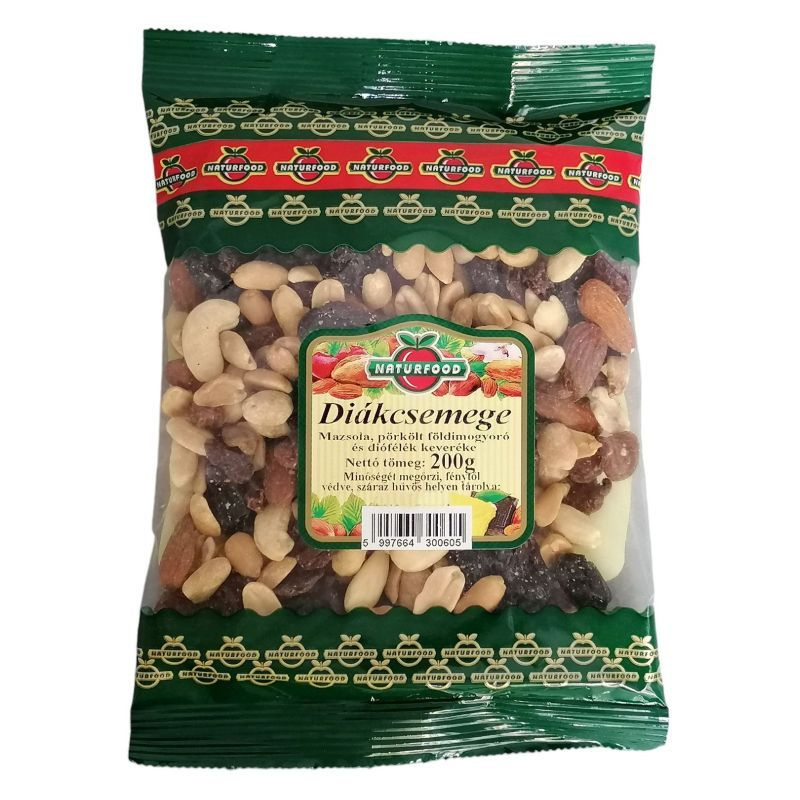 A Naturfood diákcsemege egy ízletes és tápláló snack, amely tökéletes választás mindazok számára, akik szeretnék egészségesen táplálni magukat, miközben élvezik a finom ízeket. Ez a 200 grammos kiszerelésű csemege a mazsola és a különböző diófélék harmonikus keverékéből áll, amely nemcsak ízletes, hanem tápláló is. Az olajos magvak gazdag forrásai a növényi fehérjéknek, rostoknak és antioxidáns vitaminoknak, amelyek hozzájárulnak az egészség megőrzéséhez. A diákcsemege ideális választás lehet uzsonnára, sportolás előtt vagy után, valamint bármikor, amikor egy kis energialöketre van szükség. A természetes összetevőknek köszönhetően ez a snack nem tartalmaz mesterséges adalékanyagokat, így a legjobb választás lehet a tudatos táplálkozás hívei számára.
