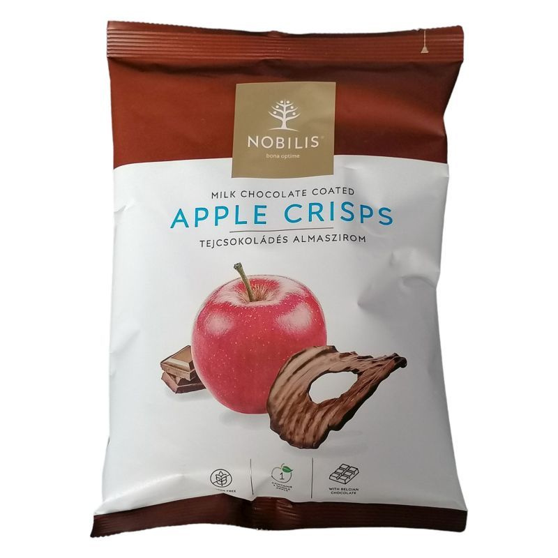 Összetevők: tejcsokoládé (cukor, kakaóvaj, kakaómassza, zsíros tejpor, emulgeálószer: szójalecitin, aroma), szárított jonatán almakarika (alma, antioxidáns: citromsav).