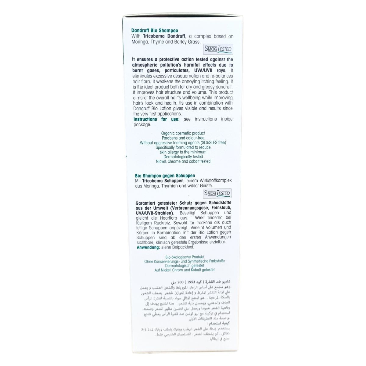 Korpásodás elleni bio sampon, amely véd az atmoszferikus szennyeződések káros hatásaival szemben, segít megszüntetni a túlzott hámlást és javítja a haj szerkezetét és tömegét.