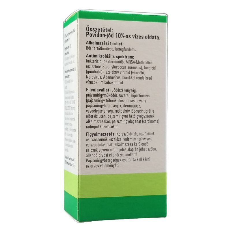 A készítmény 10 mg/ml szabad aktív jódot, mint dezinficiens hatóanyagot tartalmaz. Antimikrobiális spektrum: baktericid, fungicid, szelektív virucid, protocid. Alkalmazási terület: aszeptikus sebkezelésre, bakteriális és gombás bőrfertőzéseknél, műtétre kerülő betegek teljes vagy részleges személyi fertőtlenítésére (ún. fertőtlenítő fürdetésre), injekciózás, vérvétel, infúziók előtt a bőrfelület és a nyálkahártyák fertőtlenítésére.