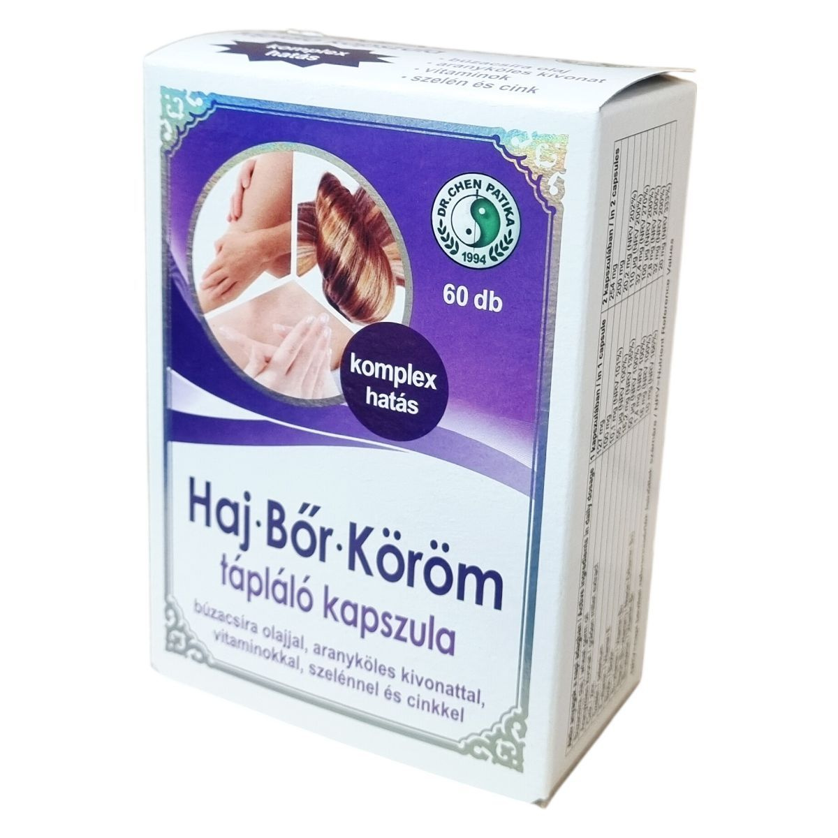 A Dr.Chen Haj Bőr Köröm tápláló lágyzselatin kapszula természetes E-vitamin tartalmú búzacsíra olajat, aranyköles kivonatot, vitaminokat és ásványi anyagokat tartalmaz. A biotin és a cink hozzájárulhat a bőr és a haj, míg a niacin és a B2-vitamin a bőr normál állapotának fenntartásához. A szelén és az E-vitamin együtt hozzájárulhatnak a sejtek oxidatív stresszel szembeni védelméhez, valamint a szelén a cinkkel együtt a haj és a köröm normál állapotának fenntartásához. A biotin, a niacin és a riboflavin (B2-vitamin) támogathatják a nyálkahártyák normál állapotának fenntartását. A niacin segítheti az idegrendszer működését, hozzájárulhat a normál pszichológiai funkció fenntartásához, míg a riboflavin és a B5-vitamin csökkenthetik a fáradtságot és a kifáradást. A készítmény hatóanyagai lágyzselatin kapszulában találhatók, amelyek a könnyű felszívódást szolgálják.