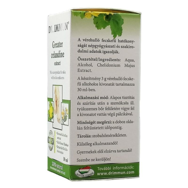 Szemölcsös vagy tyúkszemes bőr ápolására. A készítmény 3g vérehulló fecskefű alkoholos kivonatát tartalmazza 30ml-ben.