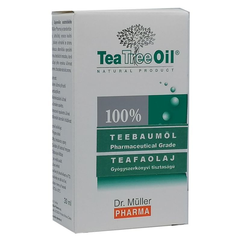 Dr. Müller teafaolaja ausztrál teafa leveleiböl készült, 100%-os gyógyszerkönyvi tisztaságú, több mint 80 szerves alkotóelemböl álló, rendkívül hatásos természetes antiszeptikum. A teafaolaj gomba-, vírus- és baktériumölö és helyi érzéstelenítö hatása révén a testápolás és az intim higiéné nélkülözhetetlen elixírje.