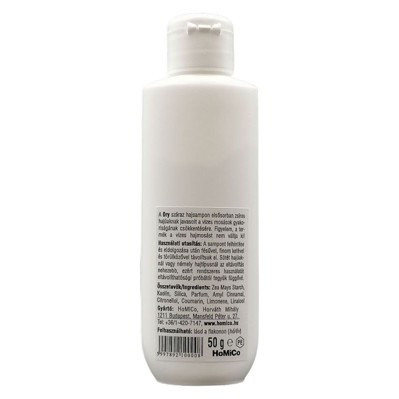Természetes anyagokból összeállított hajápoló por. gyors zsírtalanító hatás, vizes mosások gyakoriságának csökkentésére.