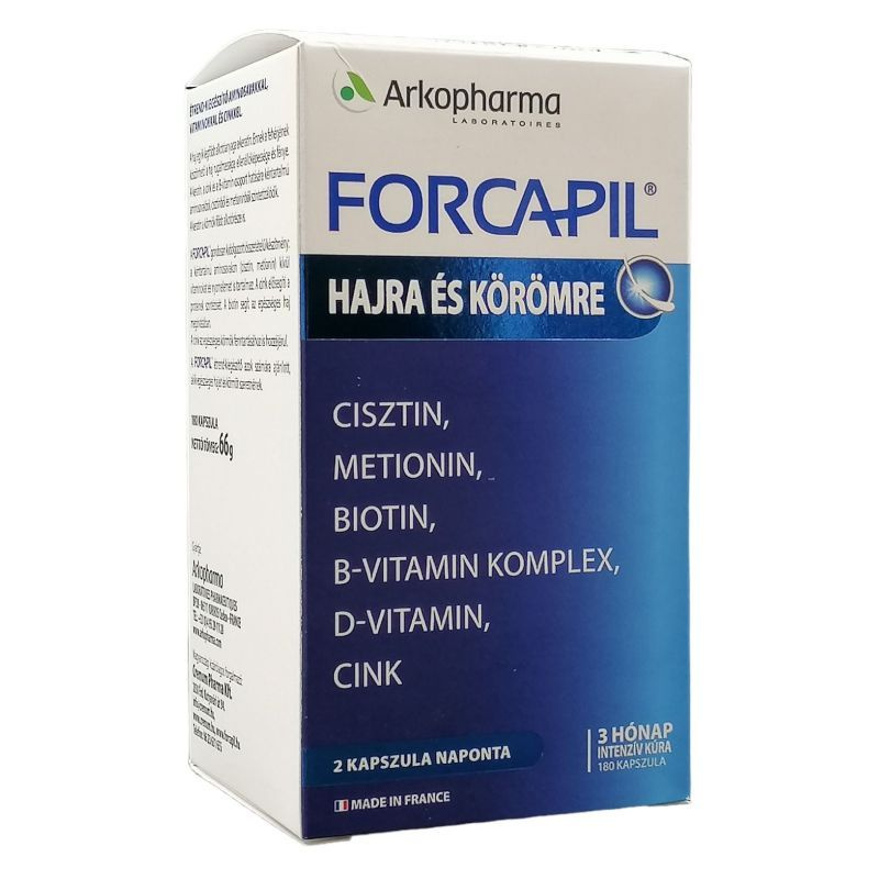 A Forcapil oldat vagy a Forcapil kapszula önálló kezelésre is alkalmas, de egyidejű alkalmazásuk növeli a hatékonyságot. Egy kezeléshez a 60 darabosból három ajánlott, a 180-as egy teljes kúrát tartalmaz. A hatás észleléséhez legalább kéthónapos kezelés szükséges az előírt adagolás szerint. Figyelmeztetés: Az ajánlott adagnál többet nem szabad bevenni! Az étrend-kiegészítő nem helyettesíti a vegyes étrendet és az egészséges táplálkozást! A készítményt gyermekek elől gondosan el kell zárni! Tartalmaz: DL-methionint, L-cisztint, vitaminokat (B5, B6, biotin), cink-pidolátot. Összetevők: DL-methionint, L-cisztint, vitaminokat (B5, B6, biotin), cink-pidolátot tartalmaz