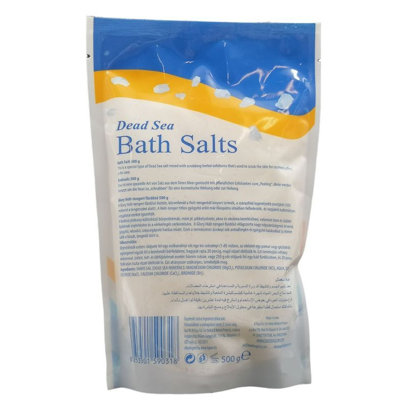 A Glory Holt-tengeri fürdősó tisztán, közvetlenül a Holt-tengerből kinyert termék, a szárazföld legmélyebb pontjáról (420 méterrel a tengerszint alatt). A Glory Holt-tengeri fürdősó világszerte nagy népszerűségnek örvend, gyógyító, relaxáló, szépségápoló hatása miatt. A fürdősó jótékony különböző bőrproblémák, mint pl. pikkelysömör, akne és ekcéma kezelésében, valamint izom és ízületi fájdalmak enyhítésére és a vérkeringés serkentésére. Ezek a természetes ásványi sók antiallergén és gyógyító hatásukkal új életre keltik a fáradt, öregedő bőrt.