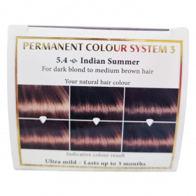 A tartós hajfesték természetes hennakivonattal készült, 2–3 hónapon át tartó színeredményt nyújt. A festék egyszerre színez és ápol, számos növényi kivonatot tartalmaz, mint a henna, martilapi, búzacsíra, napraforgómag és több gyógynövénykivonat. A formula védi a haj szerkezetét, fokozza a fényt, lassítja a szín fakulását és puha, rugalmas hajvégeredményt ad. A termék három részből áll: hajfesték krém, aktivátor és színfixáló kondicionáló. A kondicionáló lezárja a haj kutikuláit és fényes, selymes érzetet ad. A hajfesték 97%-ban természetes összetevőkre épül, és organikus növényi kivonatokkal gazdagított. Hosszú haj esetén két csomag használata ajánlott.