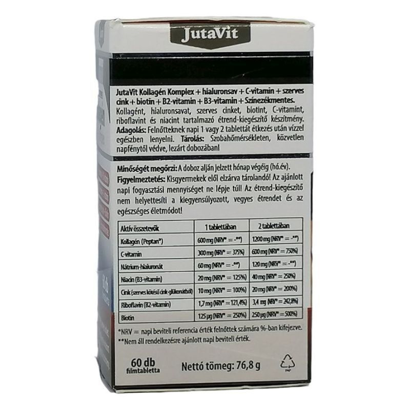 Kollagént, hialuronsavat, szerves cinket, biotint, C-vitamint, riboflavint, niacint tartalmazó étrend-kiegészítő készítmény.