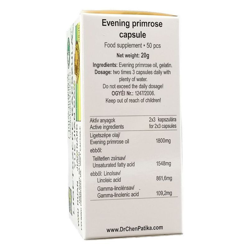 A ligetszépe-olaj értékes esszenciális zsírsavat, gamma-linolénsavat tartalmaz, amely mint többszörösen telítetlen zsírsav hozzájárul a keringési rendszer egészséges működéséhez. A gamma-linolénsav hozzájárulhat a bőr szépségének és külső-belső egészségének megőrzéséhez. Ajánlott adagolás: naponta 2 x 3 kapszula.
