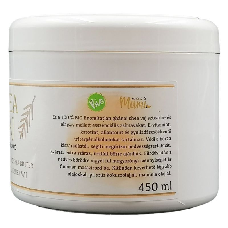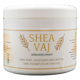 Hidratálja, megnyugtatja, regenerálja a bőrt és gyulladáscsökkentő hatással is rendelkezik. A shea vaj egy Közép-Afrikában élő fa, a karité fa terméséből készül. A karitéfa 20 éves korában hozza első, nagy, szilvára hasonlító, csonthéjas terméseit és akár 200 éven keresztül is terem. A leszüretelt gyümölcsök 60-70% zsírtartalommal rendelkeznek. A tradícionális feldolgozás eredménye egy közepes keménységű, törtfehér színű, édeskés illatú növényi zsiradék, amelyet shea vajnak hívnak. A hidegsajtolás rendkívüli előnye, hogy a shea vaj igen magas A-, E- és F-vitamin tartalmát képes megőrizni, továbbá nem tartalmazza a kémiai kivonáshoz alkalmazott vegyszerek maradékait. Napjainkban a kereskedelemben kapható, mesterséges összetevőket tartalmazó készítmények szinte mindegyike tartalmaz valamilyen kőolajszármazékot (pl. paraffinolajat) amely elfedi a bőr pórusait, ami ezáltal nem képes lélegezni. A sheavaj viszont felszívódik a bőrbe, hosszantartó hidratáló hatást fejt ki, serkenti a bőr öngyógyító képességét. A shea vaj "titka", hogy összetétele nagyon hasonlít az emberi bőrt védő természetes emulzió összetételéhez, vitamintartalma pedig szinte tökéletes bőrápolóvá teszi. Shea vaj használata: önmagában használható bőrápolóként, mely segíti a bőr rugalmasságának megőrzését. Természetesen táplálja és hidratálja bőrét, csökkenti a bőr öregedését, a ráncok kialakulását. Ekcémás bőr ill. neurodermitis esetén a legkiválóbb kozmetikum, napi használat esetén enyhíti a pikkelysömör tüneteit, regeneráló és sebgyógyító hatással rendelkezik, enyhíti a bőr allergiás reakcióját, bőrproblémákat, nyugtató hatással rendelkezik, ajakápolóként is kiváló, segít a terhességi csíkok (stria) kialakulásának megelőzésében. Masszázshoz is használható. Ápolja a törékeny körmöket, hajat. Véd a leégés ellen (2-3 faktornyi védelmet biztosít). Napozás után a shea vaj megnyugtatja az irritált bőrt. Kisebb égési sérülések esetén segíti a bőr regenerálódását. Gyulladáscsökkentő hatása révén alkalmazható kiütésekre, csípésekre. Borotválkozás után nyugtatja és ápolja az irritált bőrt. Bőrpuhító hatású, elősegíti a kirepedezett bőr gyógyulását. Babapopsi kenőcsnek is kiváló. A shea vajat mindig tiszta bőrfelületen alkalmazza. A shea vaj hatékonyságát jelentősen megnövelheti, ha bemasszírozza a bőrbe. A használat gyakoriságát bőrének típusa határozza meg. Eleinte gyakrabban -naponta kétszer, később ritkábban - napi egy alkalommal - lesz rá szüksége. Túladagolni nem lehet, mellékhatása nincs.