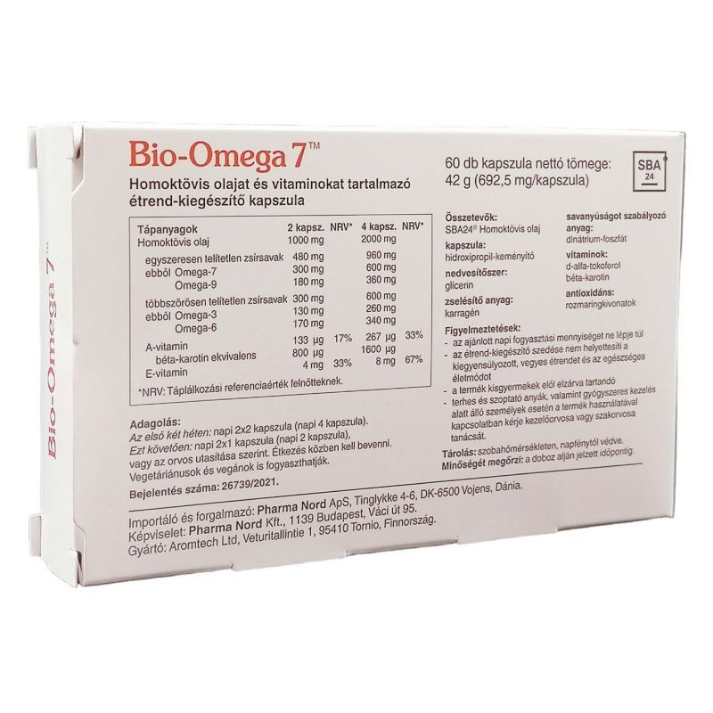 A Bio-Omega 7 SBA24 kivonatot tartalmaz, amely mind a homoktövis bogyóiból, mind magjából készül, hogy a tápanyagok leggazdagabb kombinációját biztosítsa. A kivonatot környezetbarát és szerves módon állítják elő oldószerek és magas hőmérsékletek használata nélkül, amelyek egyébként ronthatják az olajok táplálék profilját. Az alapos gyártási folyamat biztosítja, hogy a készítmény ne veszítsen biológiailag aktív hatóanyagokból. A kapszulák buborékcsomagolásban vannak az optimális hatás érdekében. Számos különböző homoktövis készítmény létezik a piacon, de csak néhányuk tartalmazza a széles körben elismert SBA24 formulát, amelyet a tanulmányok dokumentáltak.