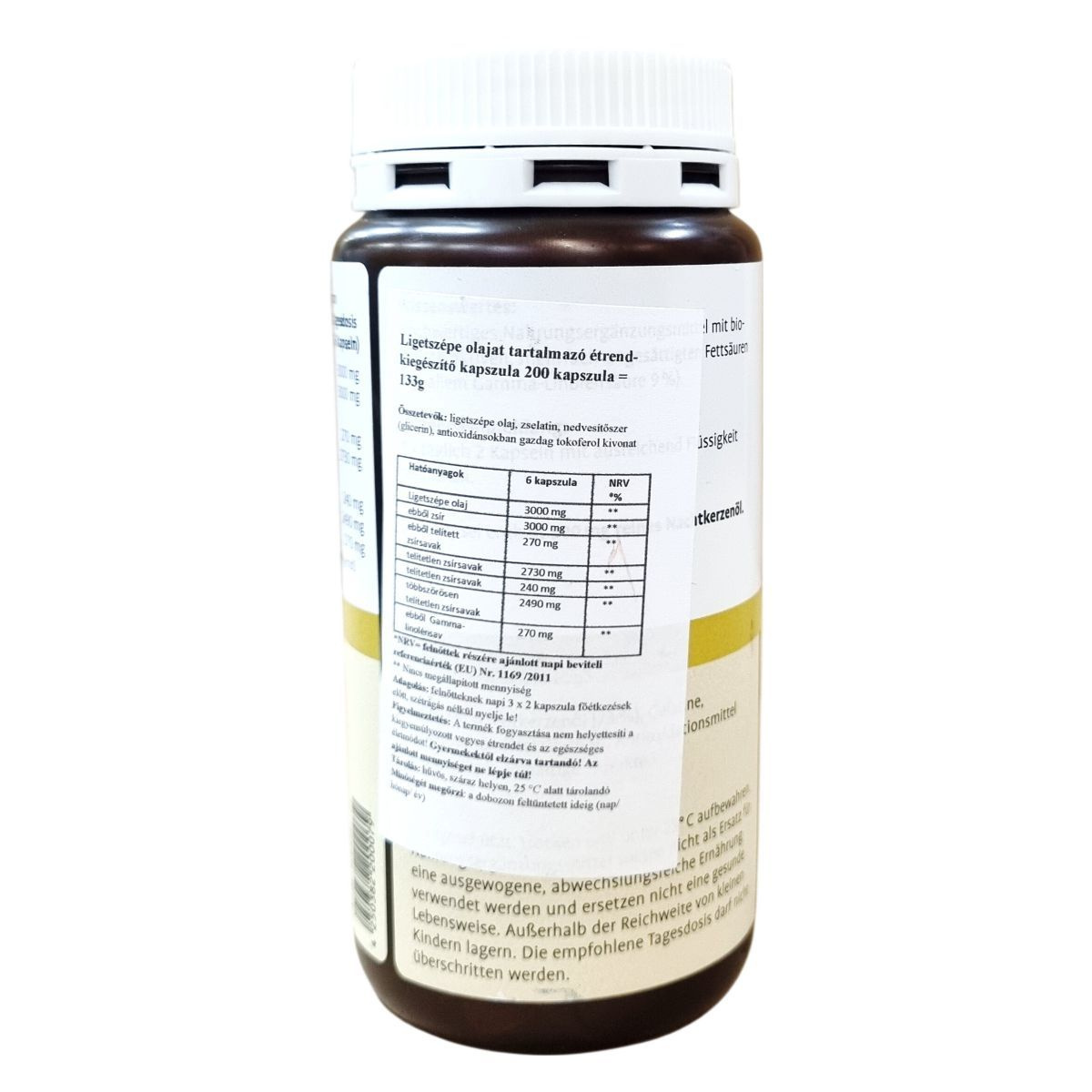 Ligetszépeolajat tartalmazó étrend-kiegészítő kapszula, biológiailag aktív, többszörösen telítetlen zsírsavakkal, köztük gamma-linolénsavval.
