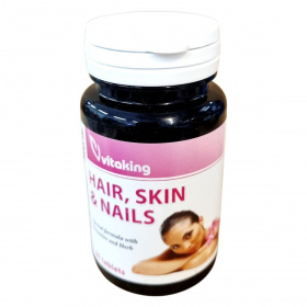 A Vitaking HAIR, SKIN & NAILS étrend-kiegészítő vitaminokat és mezei zsurló kivonatot tartalmaz, amelyek hozzájárulhatnak a haj, bőr és köröm egészséges állapotának fenntartásához.