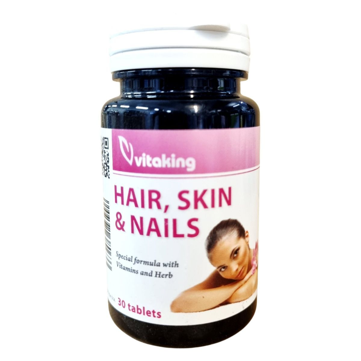 A Vitaking HAIR, SKIN & NAILS étrend-kiegészítő speciális formulája vitaminokat és mezei zsurló kivonatot tartalmaz, amelyek hozzájárulhatnak a haj, bőr és köröm egészséges állapotának fenntartásához. A termék MSM-et, L-ciszteint, kolint, inozitolt és PABA-t is tartalmaz, amelyek különféle módon támogathatják a szervezetet. A termék napi ajánlott mennyisége 1 tabletta, amelyet nem szabad túllépni. A termék nem helyettesíti a vegyes étrendet és az egészséges életmódot, és gyermekek elől gondosan elzárva, hűvös, fénytől védett helyen tárolandó.