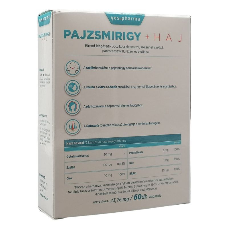 A termék organikus szelénnel, cinkkel, rézzel, biotinnal és gotu kola kivonattal támogathatja a pajzsmirigy normál működését és a haj normál állapotának fenttartását.